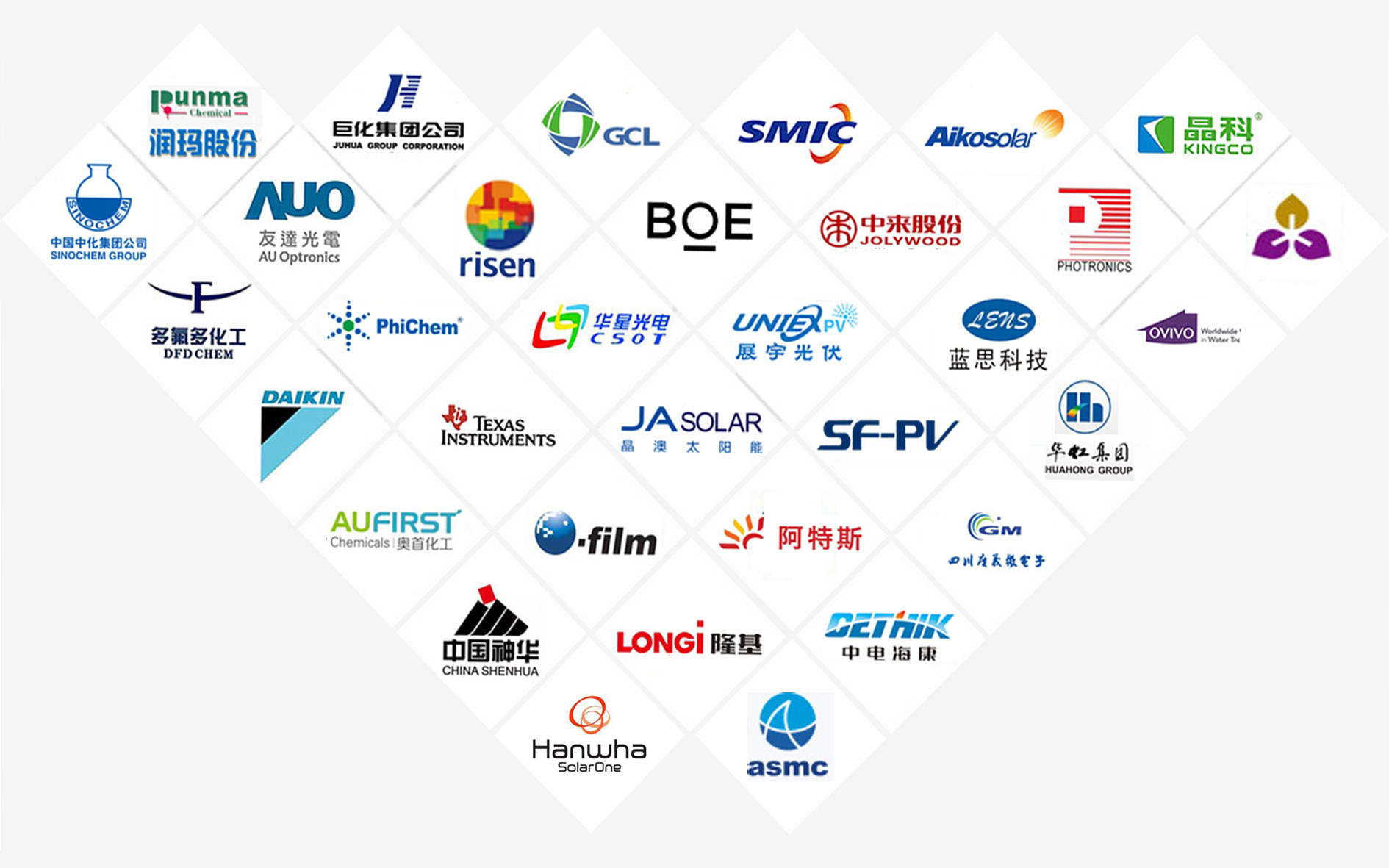 氟士德在半導體行業、TFT行業、高純化學品行業、鋰電池新能源行業、醫藥行業、汽車行業、化纖行業、軍工等眾多領域,為廣大客戶提供完善的解決方案。